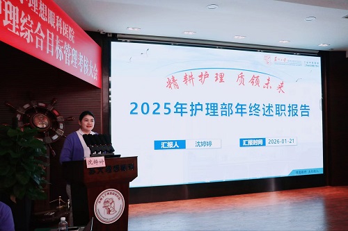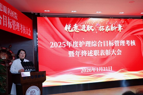 时光荏苒,岁律更新。为全面回顾年度护理工作,强化护理学科建设,提高护理服务质量。苏州大学理想眼科医院护理部于2026年01月21日下午,在1号楼6楼学术报告厅举行2025年度护理综合目标管理考核暨年终述职表彰大会。