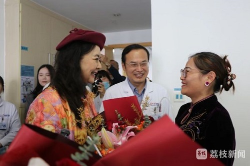 活动期间,一带一路光明大使、香港影星胡慧中女士专程莅临苏州大学理想眼科医院,开展 “光明同行,一路有我” 主题公益探访。胡慧中女士不仅会亲身体验医院先进的AI智能导诊、远程阅片等智慧医疗系统,还走进病房,与角膜移植术后患者及复杂眼病康复者进行面对面交流。