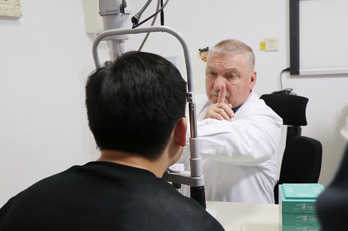 坐诊期间,俄罗斯科学院专家、俄罗斯人民友谊大学医学院弗罗洛夫·米哈伊尔·亚历山德罗维奇教授、弗罗洛夫·亚历山大·米哈伊洛维奇副教授,俄罗斯圣彼得堡大学巴巴宁·萨纳萨尔·苏里科维奇副教授重点接诊3名复杂白内障患者,教授结合检查结果详细问诊,针对患者问题逐一解答,为每位患者制定个性化诊疗计划。