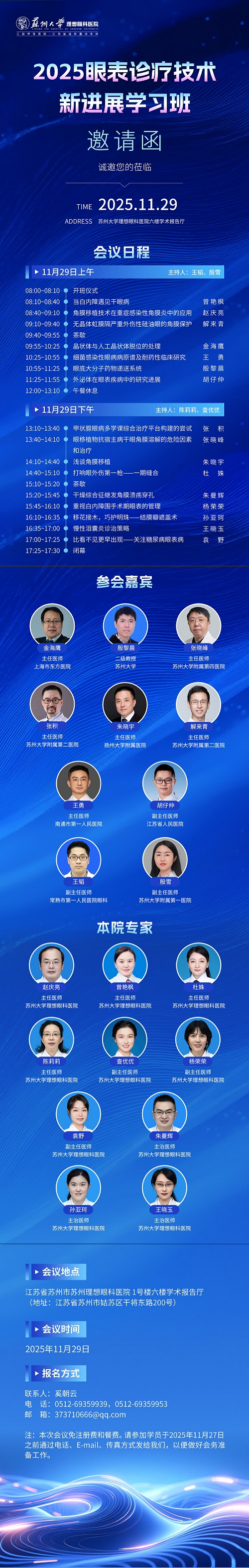 【会议邀请】2025年眼表诊疗技术新进展学习班