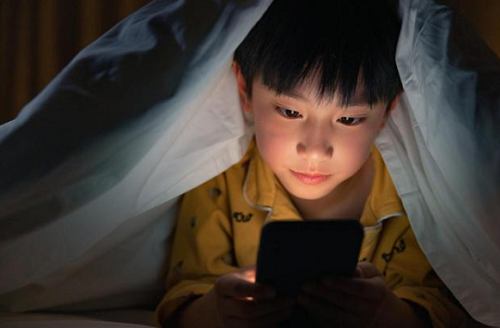 黑暗环境中,手机屏幕亮度与周围光线反差极大,会强烈刺激视网膜;同时,蓝光会抑制褪黑素分泌,打乱孩子的生物钟,而睡眠不足会间接加速眼轴增长,进而形成或发展近视。