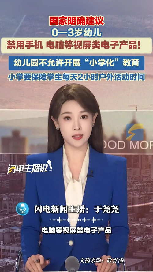 近日,教育部联合国家卫生健康委、国家疾控局印发《关于科学保护儿童远视储备量的通知》(以下简称《通知》),明确说明0—3岁幼儿禁用视屏类电子产品、3—6岁学龄前儿童尽量避免接触和使用视屏类电子产品……