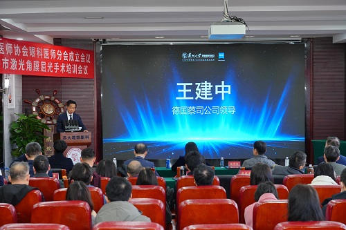 会议在苏州大学理想眼科医院执行院长宋鄂的致辞中拉开帷幕,苏州市医师协会秘书长张中伟、复旦大学附属眼耳鼻喉科医院院长周行涛教授、蔡司公司领导王建中先后致辞,共同表达了对苏州眼科屈光手术技术发展的期许与支持。