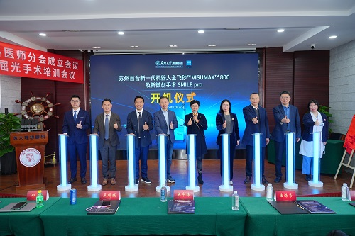 作为会议的一大亮点,苏州新一代机器人全飞秒™ VISUMAX™ 800开机仪式隆重举行,成为苏州屈光手术发展的重要里程碑,更是苏州大学理想眼科医院近视手术技术的一次革新升级。