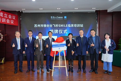 会议期间,“苏州市微创全飞秒™ SMILE 临床培训站”与“新一代机器人全飞秒™ VISUMAX™ 800新微创全飞秒™ SMILE pro手术临床合作单位”先后揭牌,特别是临床培训站的成立,标志着苏州及周边地区有了标准化的全飞秒技术培训基地。