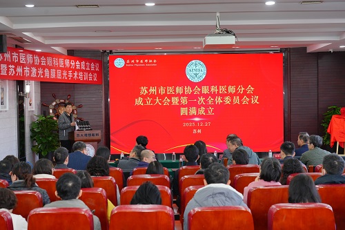 12月27日,苏州市医师协会眼科医师分会成立会议暨第一次全体委员会议顺利召开!本次会议由苏州市医师协会主办,苏州大学理想眼科医院承办。分会的成立,将有效整合苏州眼科医疗资源,形成“协同合作,共同提升”的行业生态,推动苏州眼科从“个体精进”向“整体提质”跨越,为市民眼健康筑牢行业保障。