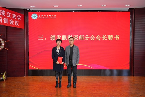 苏州市医师协会秘书长张中伟宣读了分会成立批复,并公布了首届眼科医师分会会长、副会长、常务委员、委员及秘书名单。苏州大学理想眼科医院执行院长宋鄂当选为首届会长。