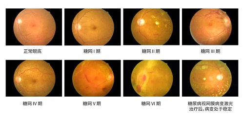 ● 早期:视网膜出现微血管瘤、少量出血点或渗出,此时患者可能没有任何症状,视力不受影响,极易被忽视;