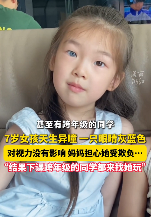 来自江西的7岁女孩,左眼是温暖的琥珀棕,右眼是清冷的灰蓝色,被网友盛赞“左眼住着人间烟火,右眼藏着星辰大海”。令人意外的是,这个在动漫中才常见的设定,在现实生活中竟收获了同学们的追捧。